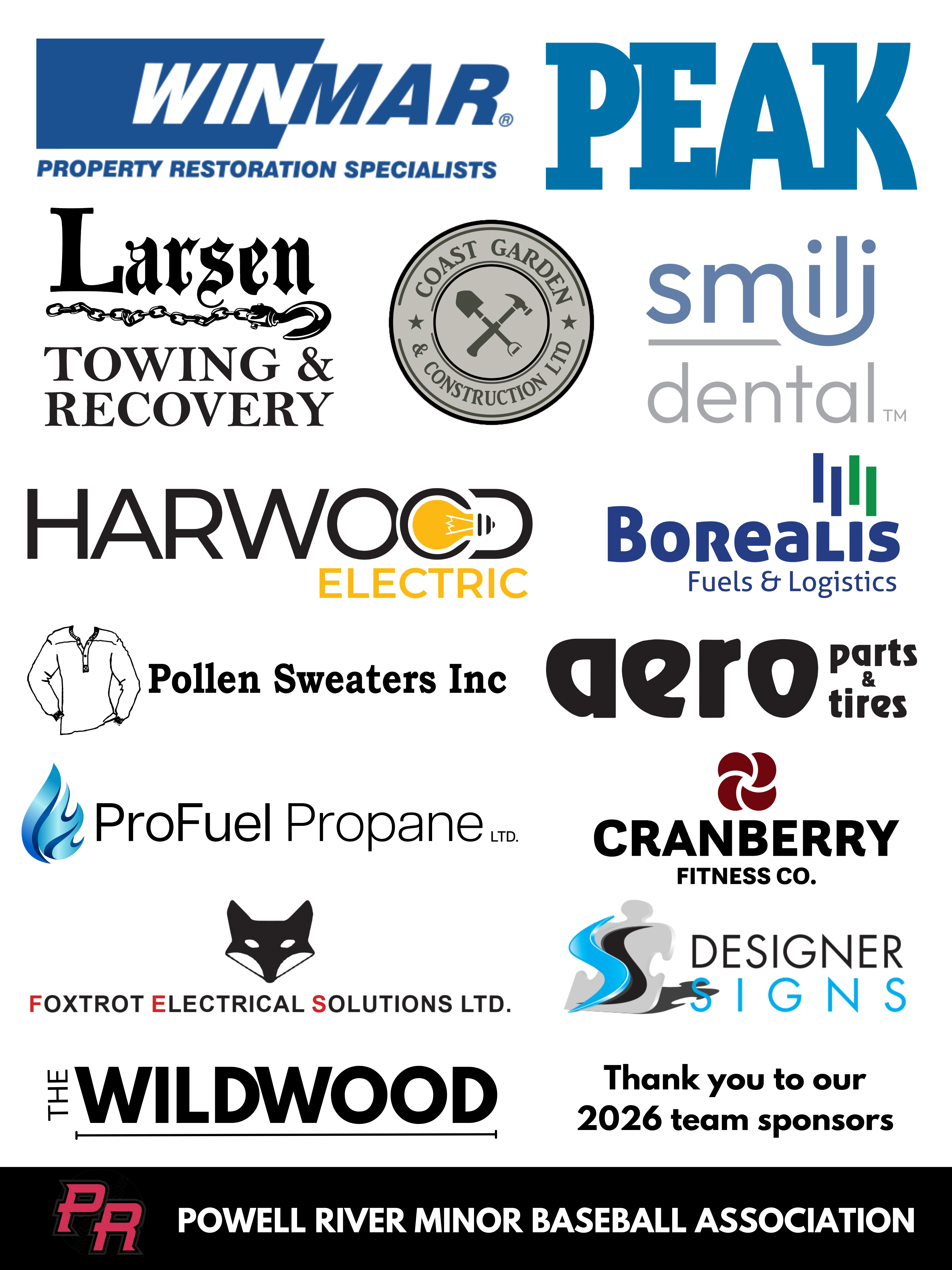 PRMBA is grateful for all our sponsors, from long standing businesses who support us year after year, to new businesses wanting to make a difference in their community. Sponsorship supports team jerseys and equipment, and keeps baseball an affordable sport for families.